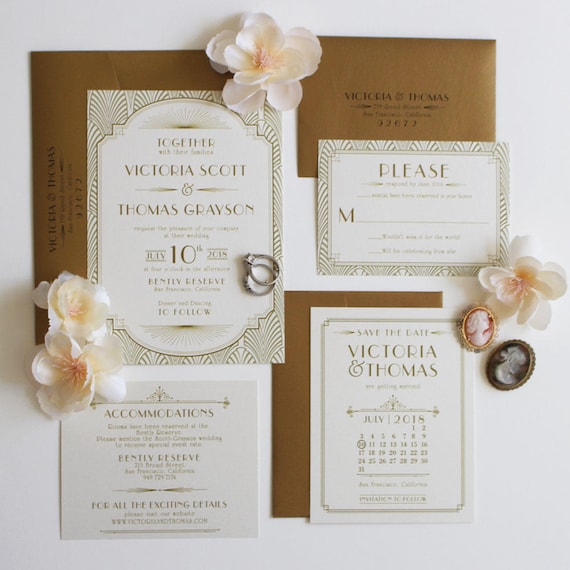 Art Deco Wedding Invitation Great Gatsby Invitation Gold Etsy Canada